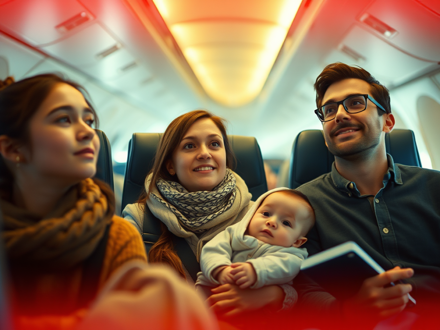 Le voyage de bébé s’effectue sur vos genoux mais sachez que certaines compagnies aériennes proposent des lits pour votre bébé. Renseignez-vous au moment de la réservation.